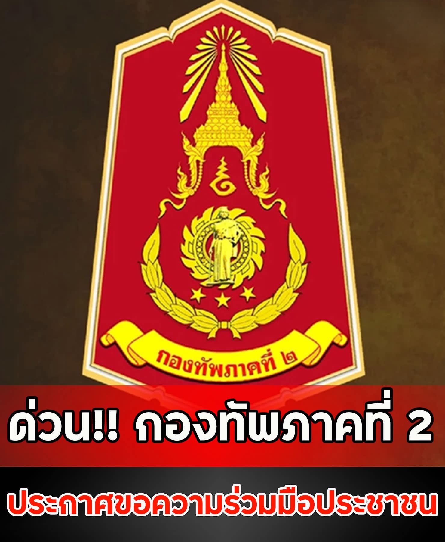 ด่วน!! กองทัพภาคที่ 2 ประกาศขอความร่วมมือประชาชน